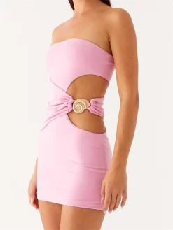 Strapless Dress for Women Slim Fit Stylish Solid Hollow Out Tube Bodycon Mini Dress for Summer